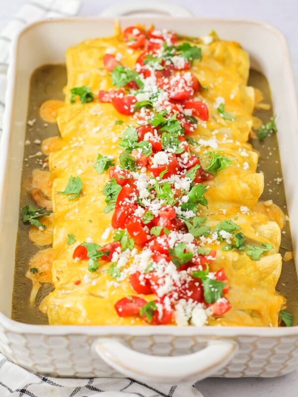 Our green chili chicken enchiladas are bursting with flavor and perfect for busy nights – plus, it’s freezer-friendly!