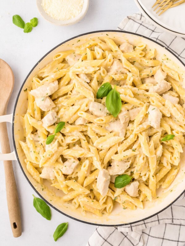 - SIMPLE. Not only is it delicious, but the recipe is simple too. There are extra steps in cooking the chicken and pasta, but it’s a classic easy dinner idea.